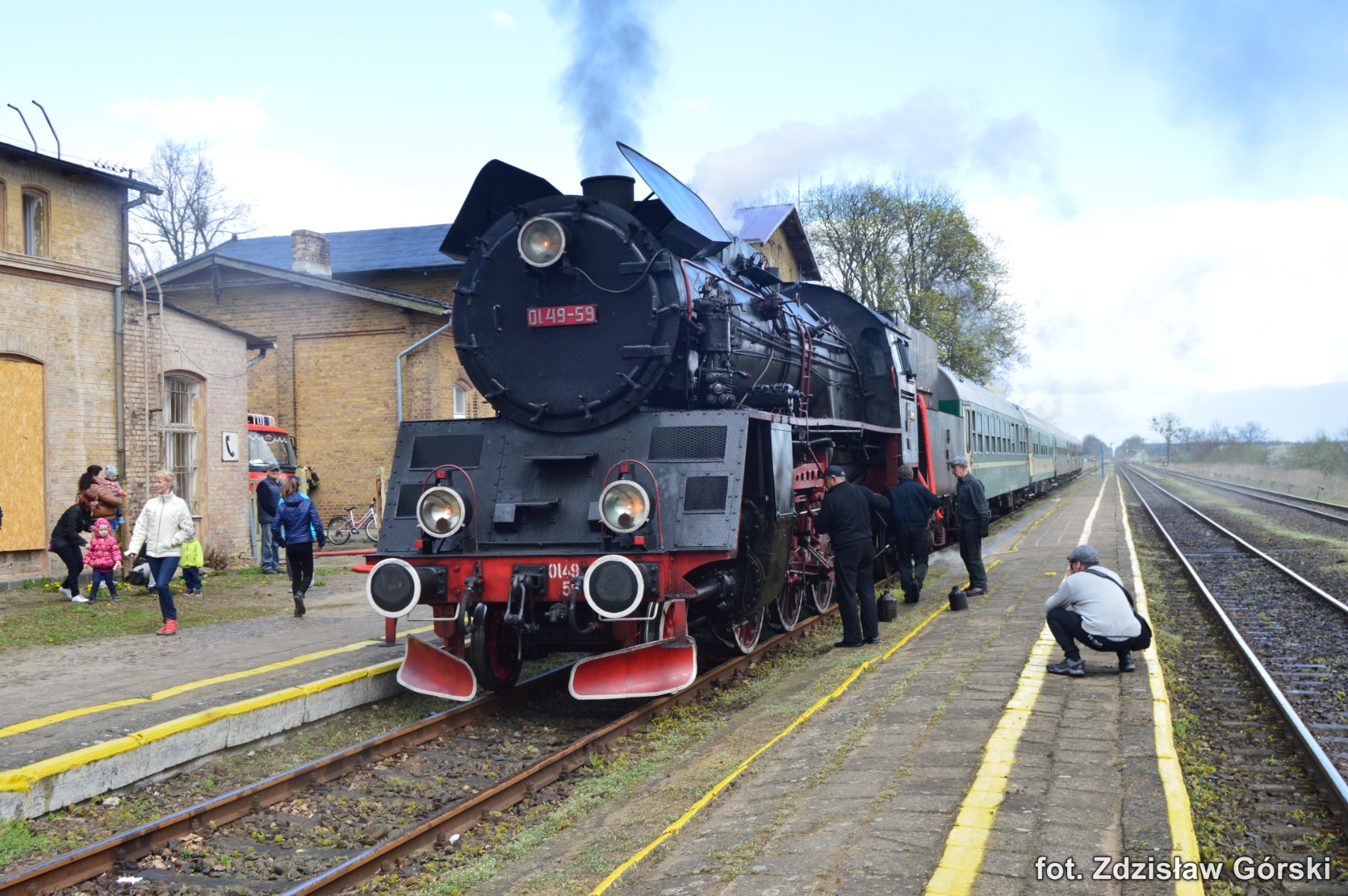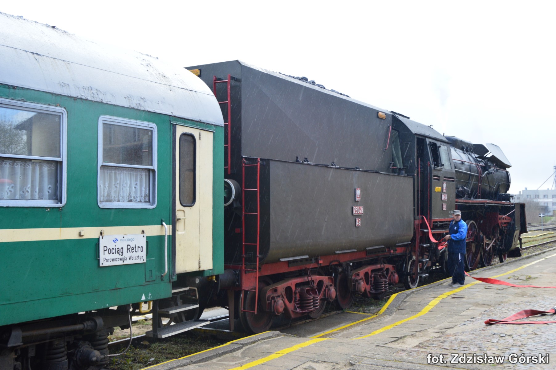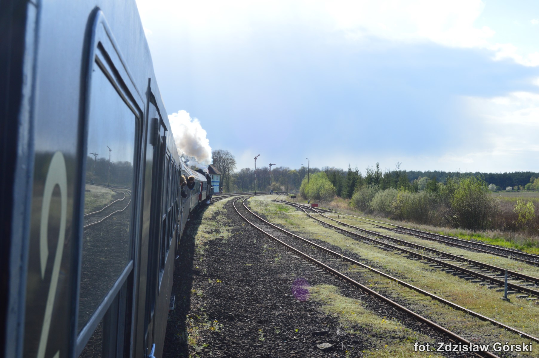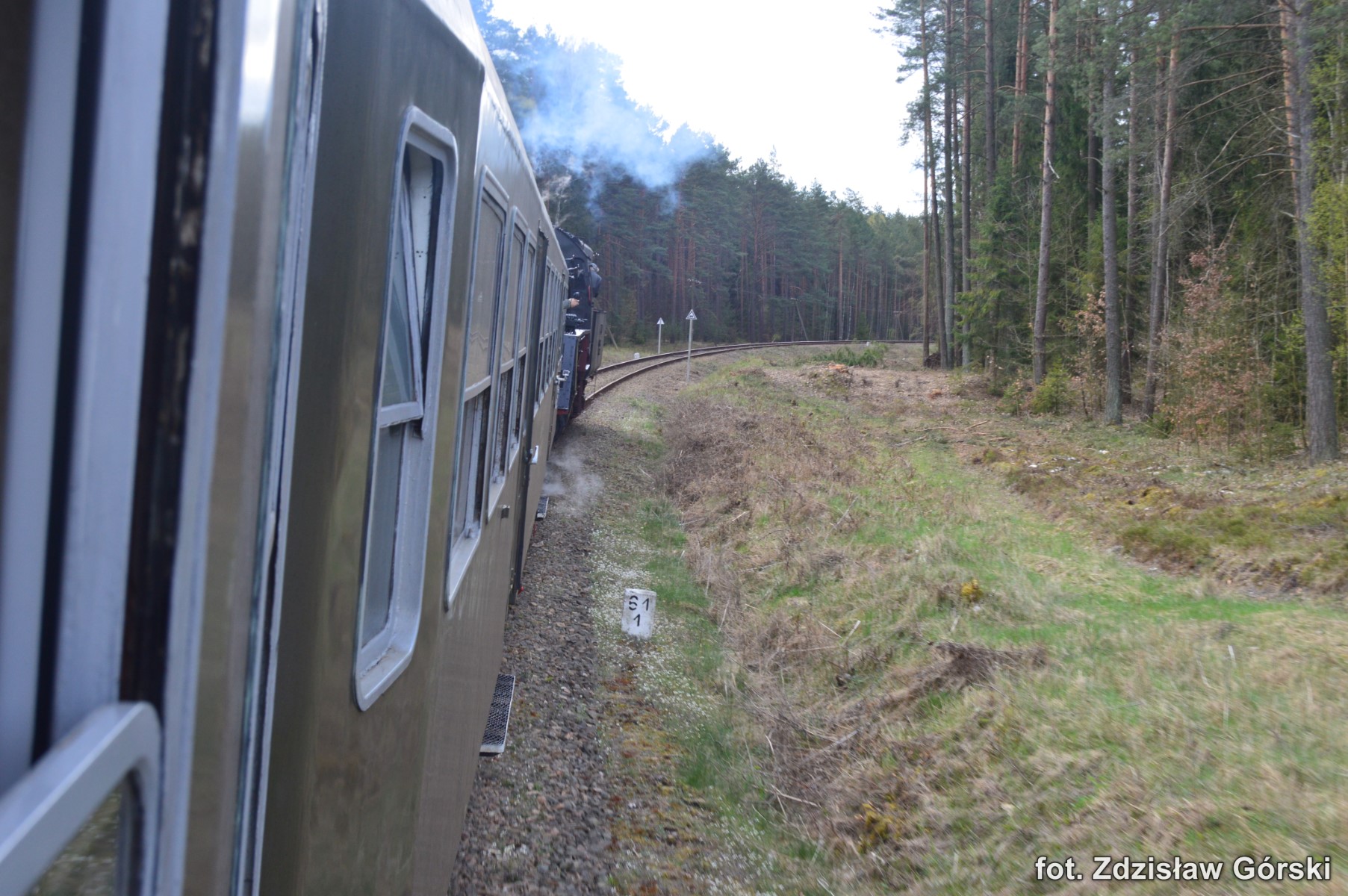 Kolejna ciekawa podróż pociągiem Skansen prowadzona parowozem Ol49-59 odbyła się 19 kwietnia 2016 roku na trasie Kościerzyna-Wolsztyn. Turystyczny pociąg jechał na odcinku Kościerzyna-Bąk linią 201, Bąk-Czersk linią 215, Czersk-Krzyż linią 203, Krzyż-Poznań Gł. linią 351, Poznań Gł.-Zbąszyń linią nr 3 i Zbąszyń-Wolsztyn linią 359. Większą część trasy pociąg jechał liniami jednotorowymi i na dodatek do tej pory jeszcze niezelektryfikowanymi. Do dzisiaj przy tej trasie stoją jeszcze drewniane słupy napowietrznych linii telefonicznych co należy już do rzadkości. Ma to swój niepowtarzalny urok i nawiązuje do dawnej kolei sprzed ponad stu lat. Na większości stacji nadal znajdują się i są sprawne mechaniczne urządzenia do obsługi ruchu pociągów. Urządzenia takie podnoszą walory estetyczne tych wszystkich stacji znajdujących się na całej trasie przejazdu. Można tam spotkać indywidualne urządzenia mechaniczne zastosowane tylko konkretnie dla danej stacji. Dla takich perełek warto odbyć taką wspaniałą podróż chociażby po to aby utrwalić je na fotografii dla przyszłych pokoleń. Spieszmy się aby podziwiać tą piękną technikę kolei i życzmy sobie aby nowoczesność nieprędko tam dotarła póki mamy jeszcze na to czas.