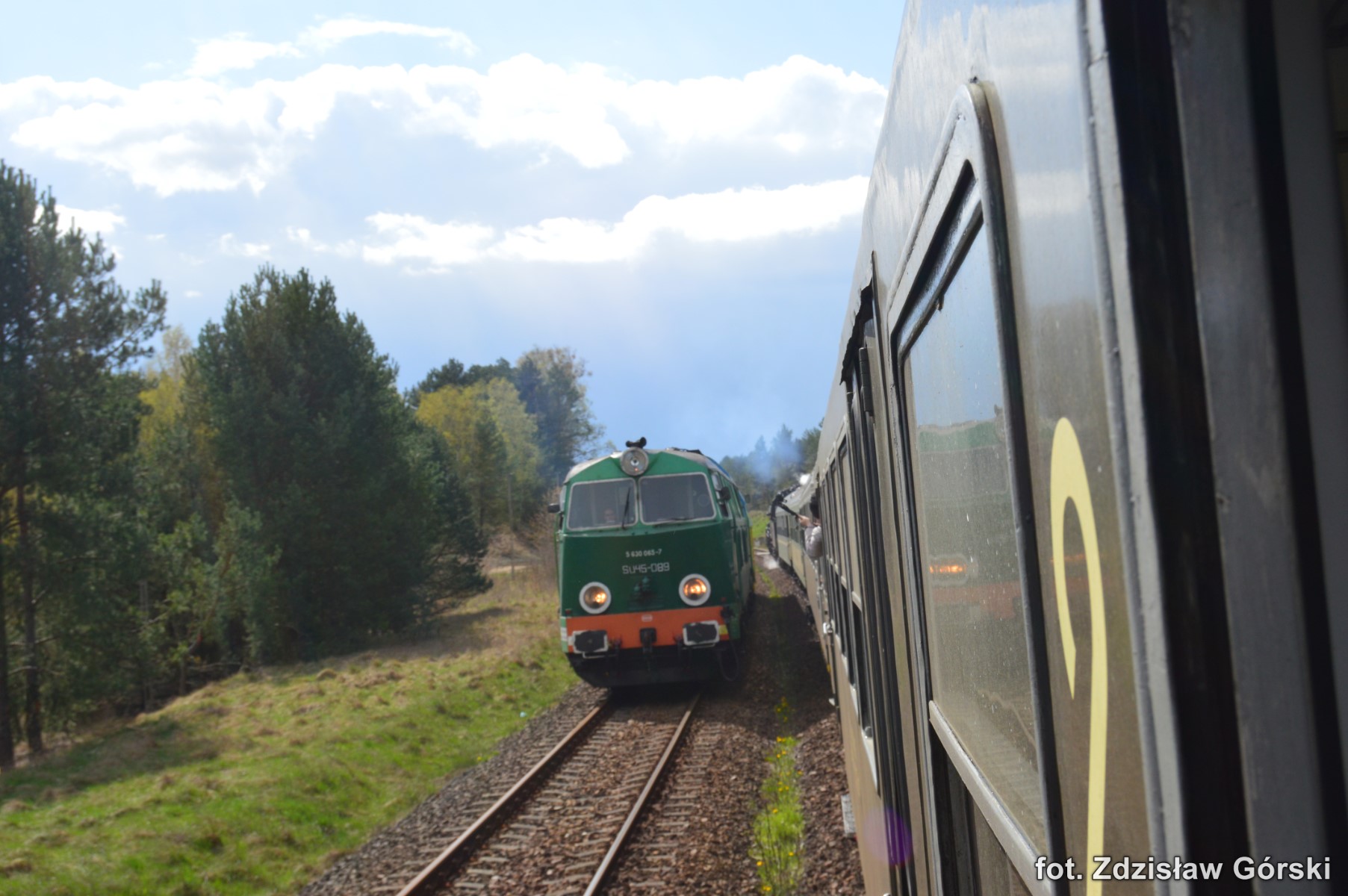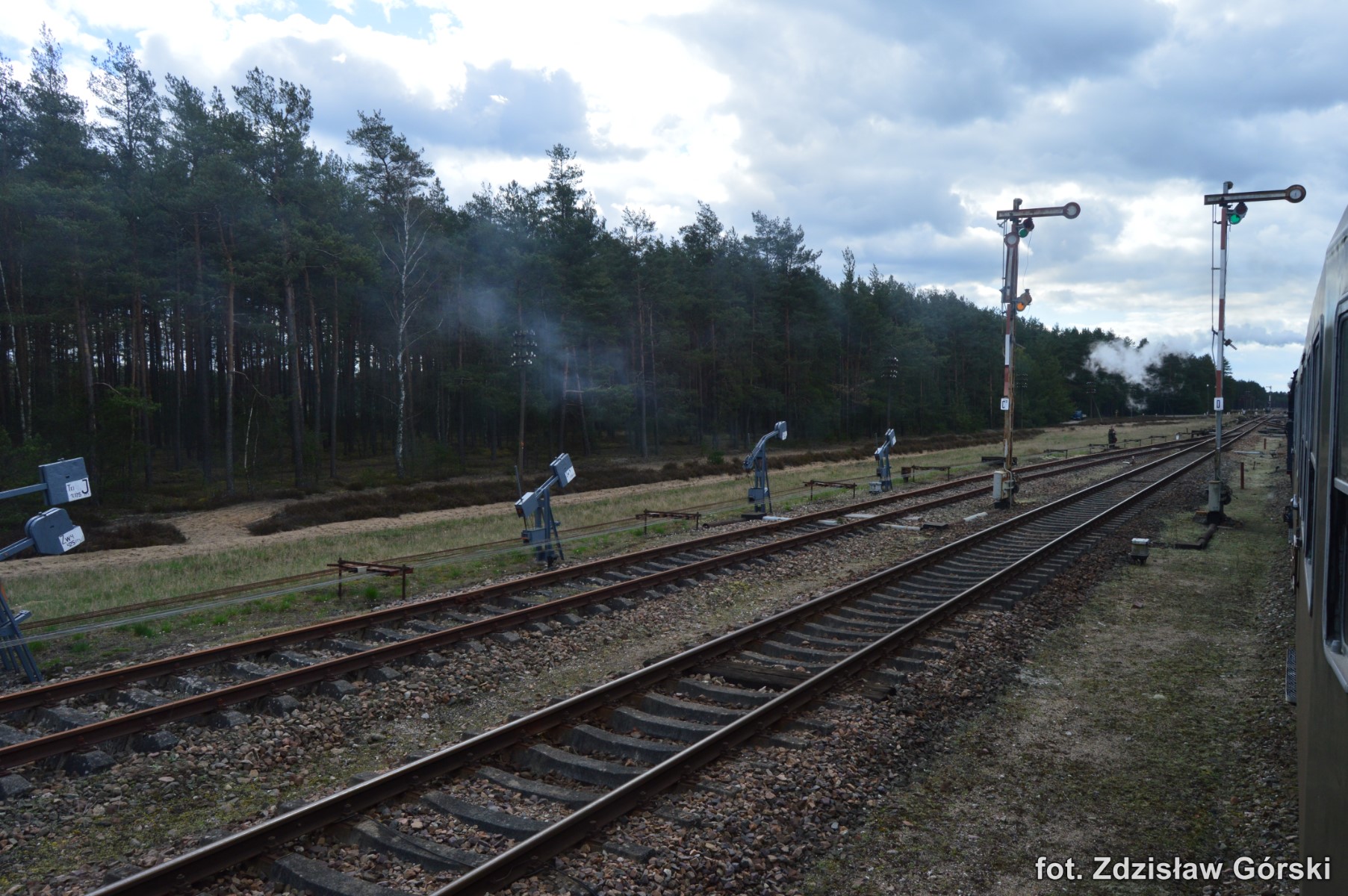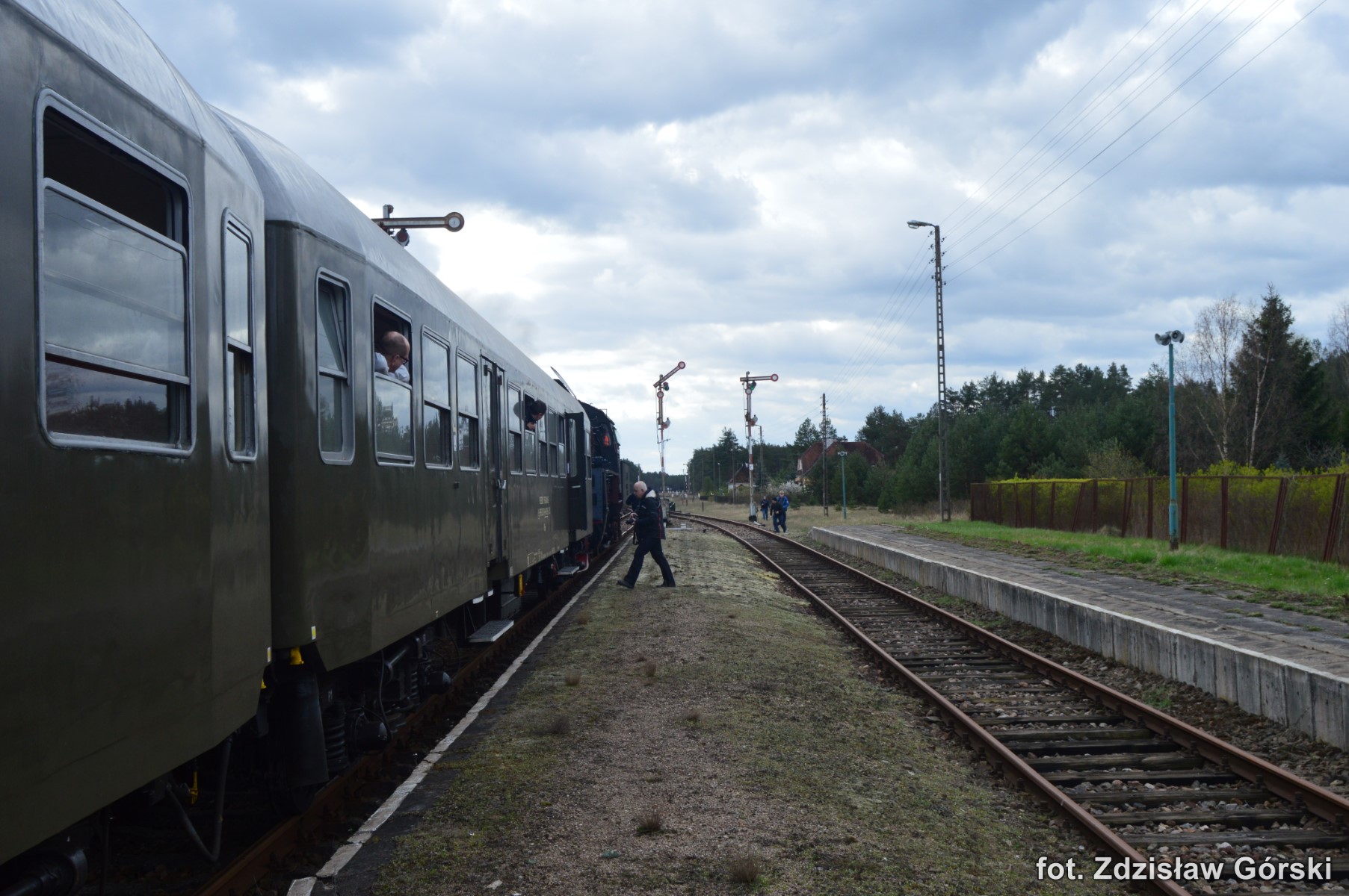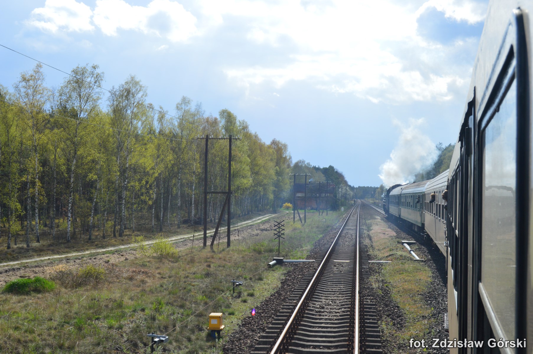 Kolejna ciekawa podróż pociągiem Skansen prowadzona parowozem Ol49-59 odbyła się 19 kwietnia 2016 roku na trasie Kościerzyna-Wolsztyn. Turystyczny pociąg jechał na odcinku Kościerzyna-Bąk linią 201, Bąk-Czersk linią 215, Czersk-Krzyż linią 203, Krzyż-Poznań Gł. linią 351, Poznań Gł.-Zbąszyń linią nr 3 i Zbąszyń-Wolsztyn linią 359. Większą część trasy pociąg jechał liniami jednotorowymi i na dodatek do tej pory jeszcze niezelektryfikowanymi. Do dzisiaj przy tej trasie stoją jeszcze drewniane słupy napowietrznych linii telefonicznych co należy już do rzadkości. Ma to swój niepowtarzalny urok i nawiązuje do dawnej kolei sprzed ponad stu lat. Na większości stacji nadal znajdują się i są sprawne mechaniczne urządzenia do obsługi ruchu pociągów. Urządzenia takie podnoszą walory estetyczne tych wszystkich stacji znajdujących się na całej trasie przejazdu. Można tam spotkać indywidualne urządzenia mechaniczne zastosowane tylko konkretnie dla danej stacji. Dla takich perełek warto odbyć taką wspaniałą podróż chociażby po to aby utrwalić je na fotografii dla przyszłych pokoleń. Spieszmy się aby podziwiać tą piękną technikę kolei i życzmy sobie aby nowoczesność nieprędko tam dotarła póki mamy jeszcze na to czas.